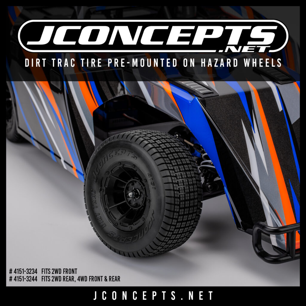 Item #4151-3234 and 4151-3344 Dirt Trac Pre-Mounted Tires https://blog.jconcepts.net/2025/07/jconcepts-new-release-dirt-trac-pre-mounted/